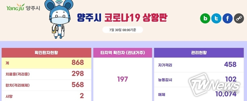 [제주교통복지신문 최효열 기자] 양주시에서 코로나 확진자 23명이 발생했다.
