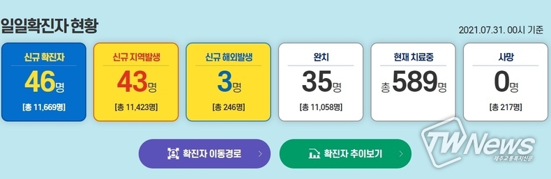 [제주교통복지신문 최효열 기자] 대구광역시에서 코로나 확진자 46명이 발생했다.