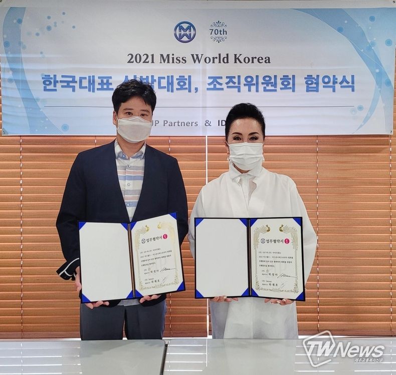 [제주교통복지신문 민진수 기자] 세계양대 미인대회인 2021 미스월드의 세계결선무대에 진출하기 위한 한국대표를 선발대회를 앞두고 주최사인 PJP partners(대표 박정아)와 주관사인 ㈜아이디워(대표 하재호)가 미스월드코리아 조직위원회 협약식을 진행했다.