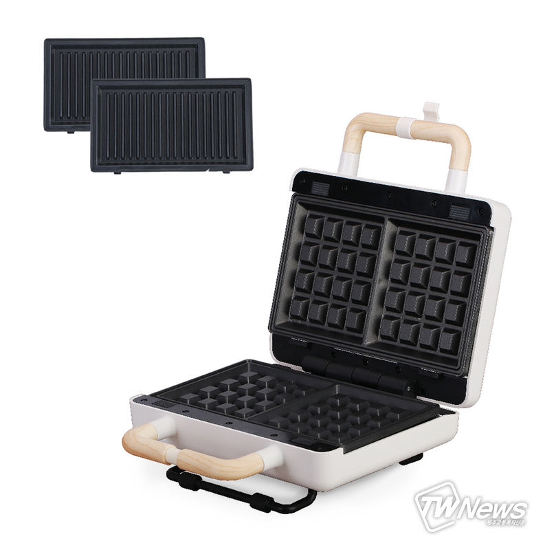 단미 2구 와플메이커 ‘DA-SAN02’ 제품은 ‘샌드위치, 와플’ 총 2종 플레이트가 기본 구성으로 논스틱 코팅이 되어있어 음식이 잘 눌어붙지 않고 벗겨지지 않는다.