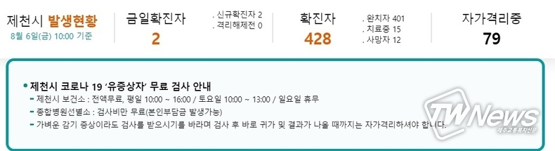 [제주교통복지신문 최효열 기자] 제천시에서 코로나 확진자 2명이 발생했다.