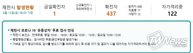 [제주교통복지신문 최효열 기자] 제천시에서 코로나 확진자 4명이 발생했다.