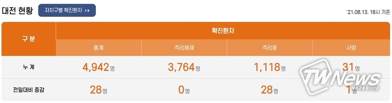 14일 대전광역시에 따르면 이날 4943번~4956번 확진자가 나왔다.