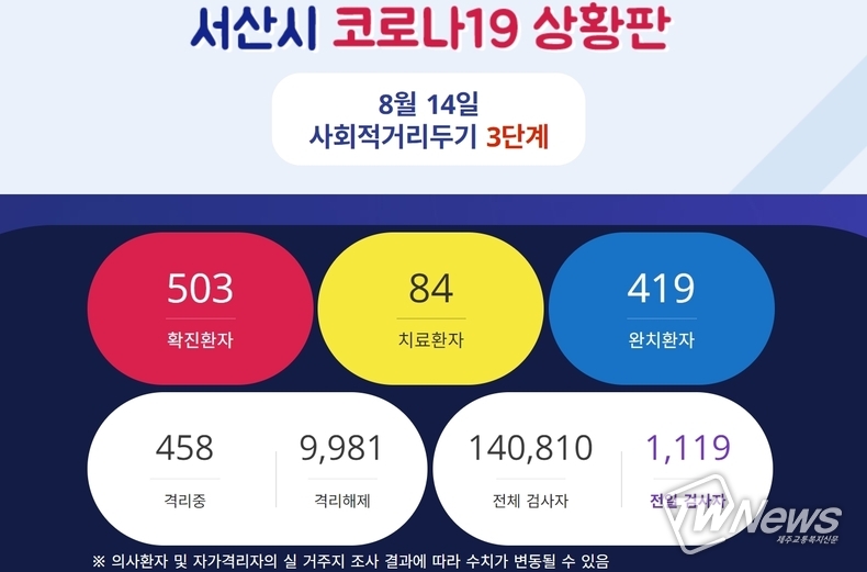 [제주교통복지신문 최효열 기자] 서산시에서 코로나 확진자 15명이 발생했다.