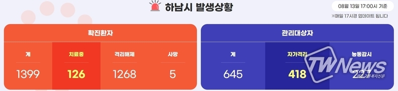 14일 하남시에 따르면 이날 관내 19명, 타지역 2명 등 21명이 코로나 확진 판정을 받았다.