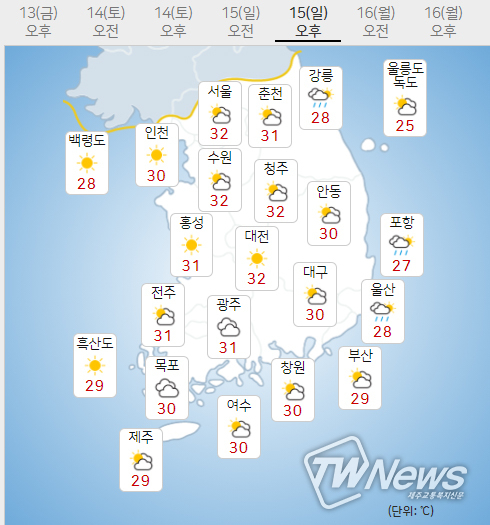토요일인 14일 오늘의날씨는 다음과 같다.