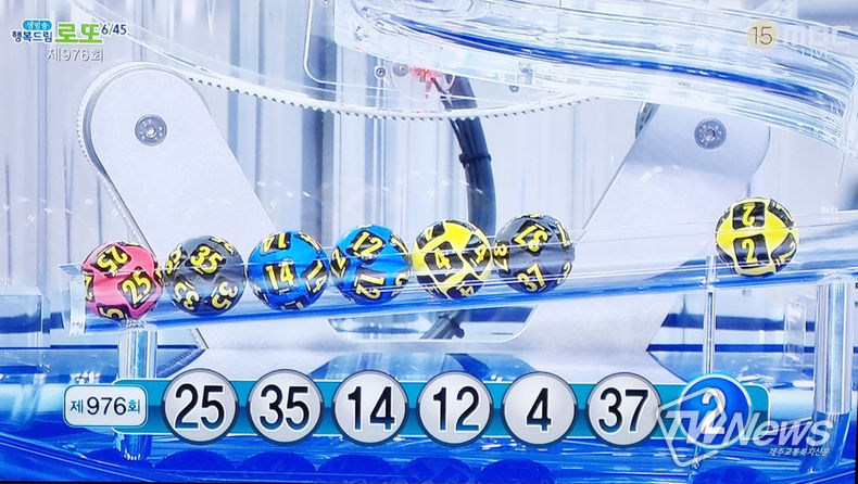 8월14일 로또 976회 1등 당첨번호조회 결과 " 25, 35, 14, 12, 4, 37 " 2등보너스번호는 " 2 "이다.