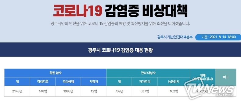 15일 광주시에 따르면 이날 오후 5시 기준으로 관내에서 14명이 코로나 확진 판정을 받았다.