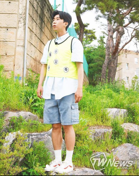 사진 속 임영웅은 하늘색 셔츠에 청반바지를 입고있다. 셔츠위에 노란색 조끼를 겹쳐 입어 마치 유치원에 등원하는 것처럼 보이기도 하다.