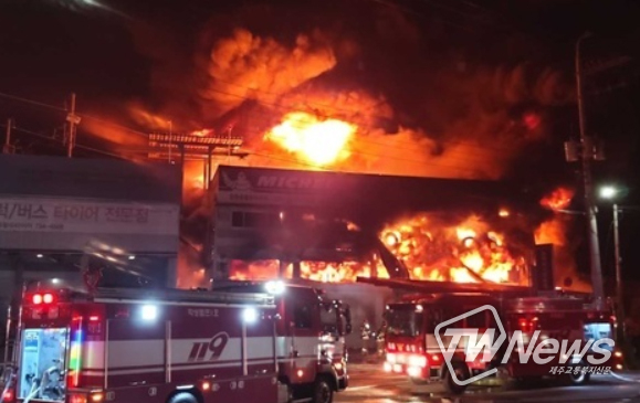 [제주교통복지신문 최효열 기자] 17일 오후 8시23분쯤 강원도 원시 지정명 차량 타이어 정비공장에서 화재가 발생했다.