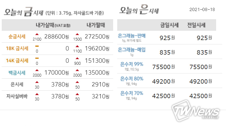 자세한 금값시세는 한국표준금거래소, 한국금거래소 등 다양한 홈페이지에서 조회할 수 있다.