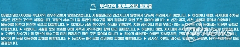 동래구는 8.21.(토) 9시부로 세병교, 연안교, 수연교 하상도로가 통제되었으니 우회하여 주시기 바라며 온천천,수영강 산책로 이용을 금지하여 주시기 바란다는 문자를 발송했다.