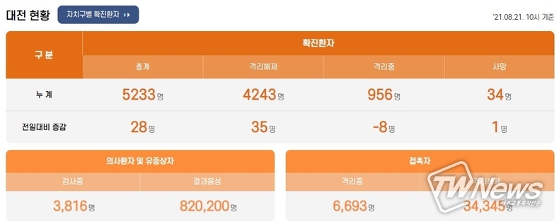 [제주교통복지신문 최효열 기자] 대전광역시에서 코로나 확진자 8명이 추가로 발생했다.