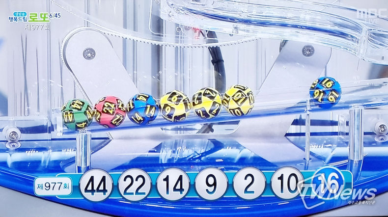 [제주교통복지신문 최효열 기자] 2021년 8월21일 로또 977회 1등 당첨번호조회는 " 44, 22, 14, 9, 2, 10 " 2등보너스번호는 " 16 "이다.