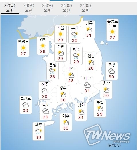 다음은 일요일 오늘날씨이다.