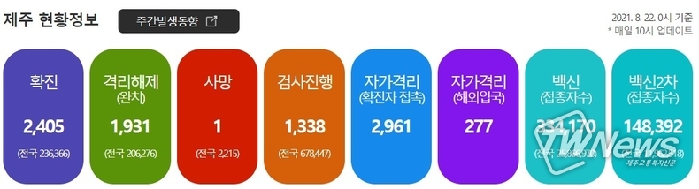 이에 따라 제주지역 누적 확진자 수는 총 2435명으로 집계됐다.