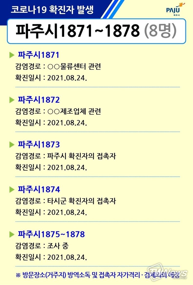 [제주교통복지신문 최효열 기자] 경기 파주시에 코로나19 확진자가 발생했다.