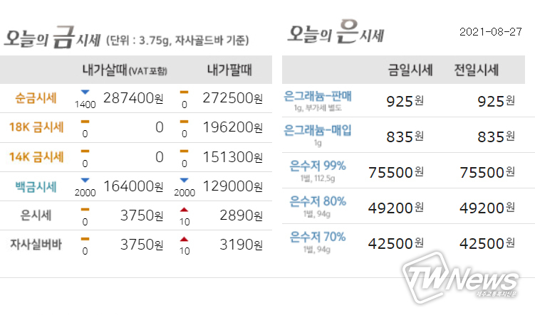 자세한 금값시세는 한국표준금거래소, 한국금거래소 등 다양한 홈페이지에서 조회할 수 있다.
