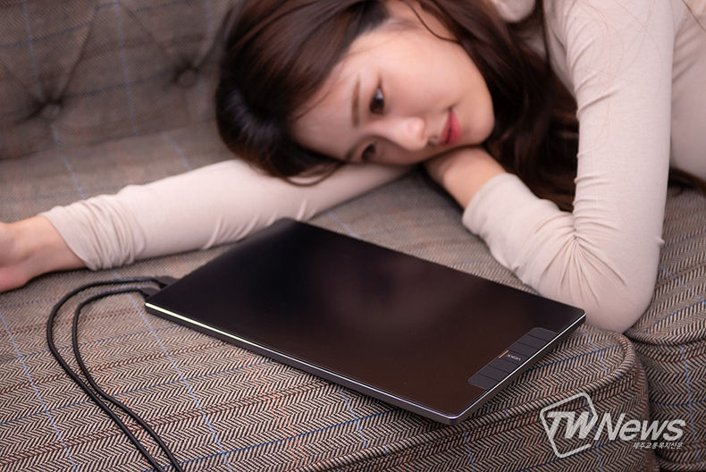 웹툰을 그리는 디지털드로잉 장비인 액정 타블렛 제품 중 이동성이 뛰어나고 가성비를 갖춘 베이크코리아의 ‘VK1200’은 11.6인치 디스플레이로 미니멀한 사이즈와 감각적인 디자인을 자랑하는 제품이다. 318x190x10mm의 무게로 우수한 휴대성을 가지고 있어 연출 드로잉, 온라인 수업, 모션 트레이싱 등 어디서든 원하는 작업환경에서 사용할 수 있는 편리성을 가지고 있다.