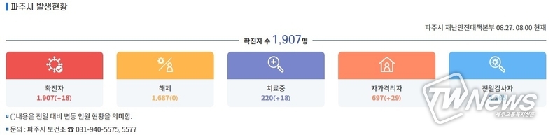 파주시에 따르면 28일 0시 기준 코로나 확진자 21명이 발생했다.