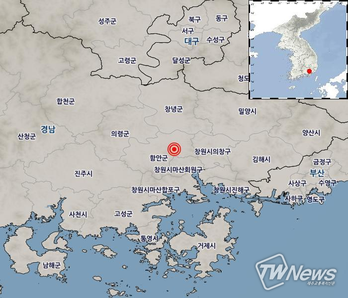(위도: 35.31 N, 경도: 128.49 E, ± 0.8km)에서 규모2.2 지진이 발생했다.