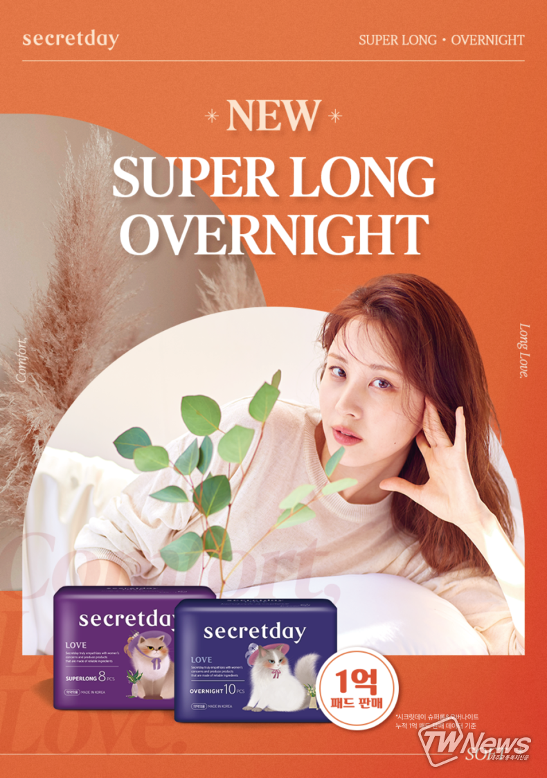 [제주교통복지신문 전희연 기자] 시크릿데이에서 누적 1억 패드 판매된 ‘슈퍼롱 & 오버나이트’를 신제품 러브 라인으로 오는 3일 출시한다고 밝혔다.
