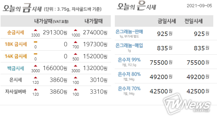 자세한 금값시세는 한국표준금거래소, 한국금거래소 등 다양한 홈페이지에서 조회할 수 있다.