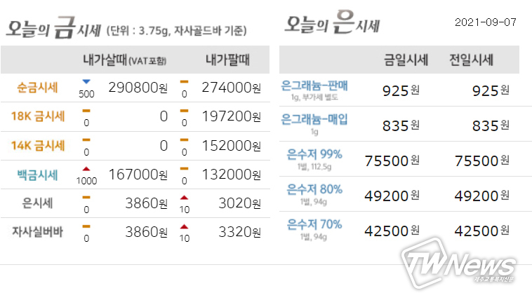 자세한 금값시세는 한국표준금거래소, 한국금거래소 등 다양한 홈페이지에서 조회할 수 있다.