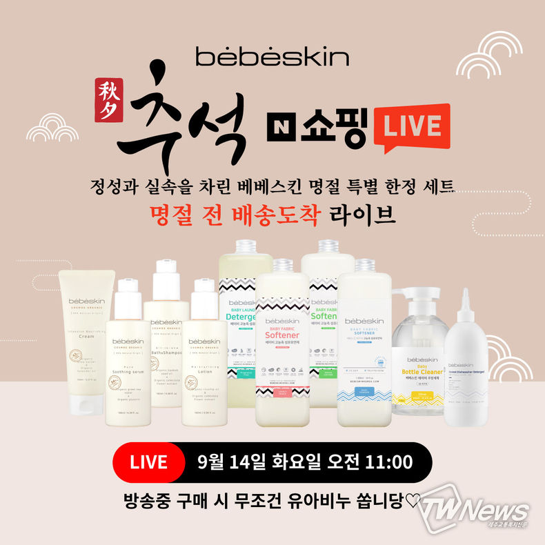 [제주교통복지신문 신혜정 기자] 프리미엄 베이비 스킨&리빙케어 브랜드 베베스킨이 네이버 쇼핑 라이브 네 번째 방송을 진행한다고 7일 밝혔다.