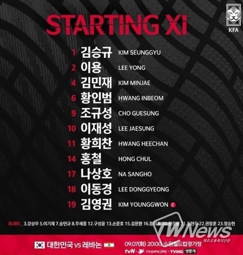 [제주교통복지신문 최효열 기자] 레바논전 선발라인업이 공개됐다.