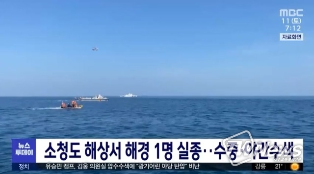 [제주교통복지신문 최효열 기자] 인천시 옹진군 소청도 인근에서 경비중이던 경비함정 518함(500톤급)에서 서해5도 특별경비단 소속 순경이 실종돼 해경이 수색중이다.