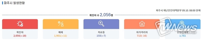 파주시에 따르면 11일 0시 기준 10명이 코로나 확진 판정을 받았다.