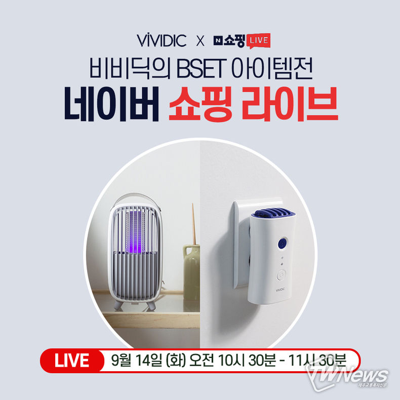 [제주교통복지신문 신혜정 기자] 벌레퇴치 전문 기업 '비비딕'이 오는 14일 화요일 오전 10시 30분부터 11시 30분까지 총 한 시간가량 네이버 쇼핑 라이브 채널을 통해 벌레퇴치기, 모기퇴치기 생방송을 진행한다고 13일 밝혔다.