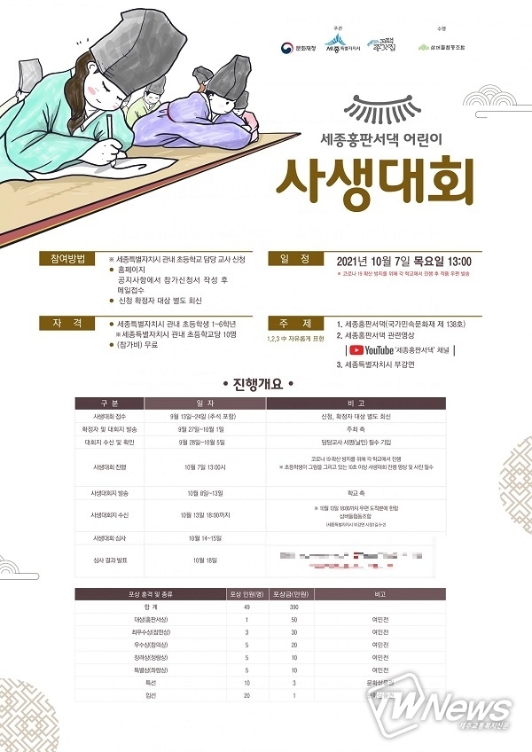 오는 27일에서 10월 1일 사이에 주최 측에서 확정자를 결정해 대회지를 발송한다. 오는 28일에서 10월 5일 사이 대회지를 수신하면 담당 교사의 서명을 필수로 기입하고 오는 10월 7일 오후 1시부터 사생대회가 진행된다.