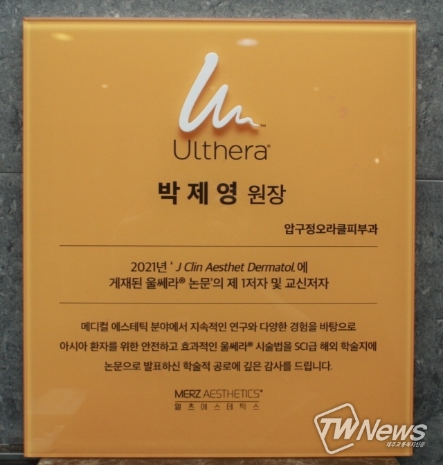 [제주교통복지신문 민진수 기자] 박제영 압구정오라클피부과 대표원장은 본인이 직접 집필한 울쎄라 논문이 SCI급 해외 유명 학술지에 게재됐다고 13일 밝혔다. 이를 기념해 울쎄라 공식 공급기업 멀츠에스테틱스는 박 원장에게 감사패를 수여 했다.