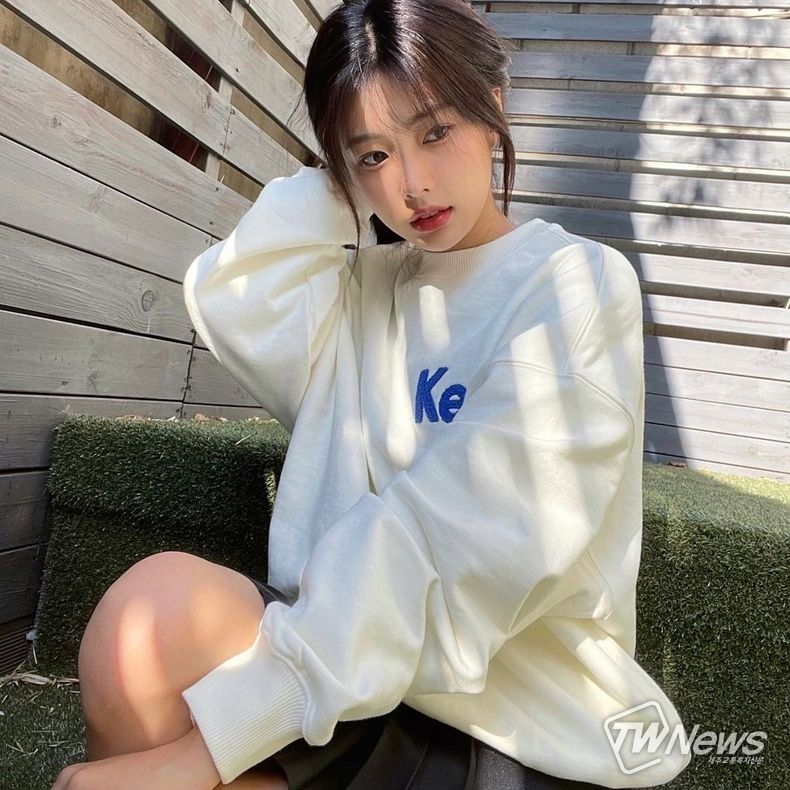 공개된 사진 속 강혜원은 화이트 맨투맨을 착용하고 머리를 한 손으로 올리며 청순하면서도 사랑스러운 비주얼로 시선을 사로잡았다