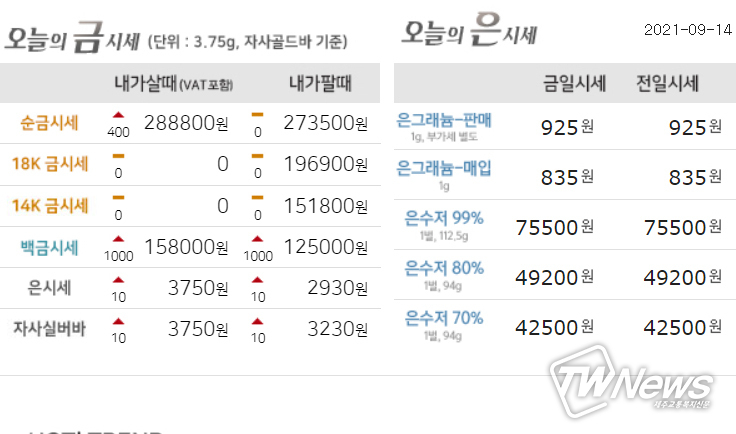 자세한 금값시세는 한국표준금거래소, 한국금거래소 등 다양한 홈페이지에서 조회할 수 있다.