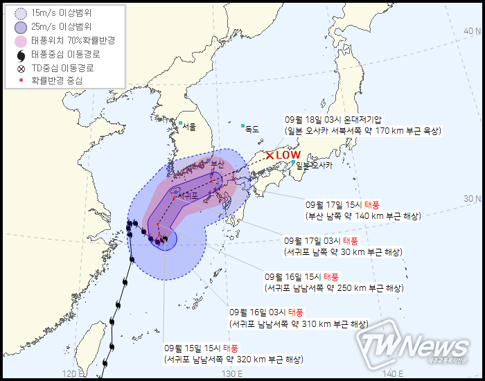 17일 15시 제주도 서귀포 남쪽 약 140km부근해상