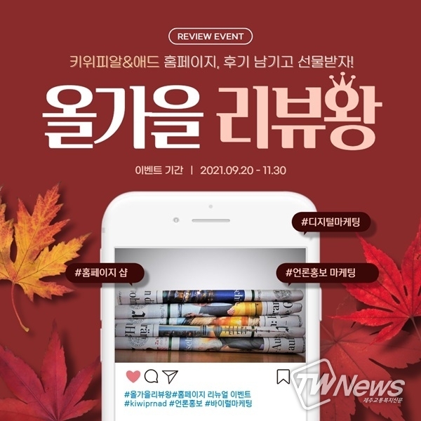 [제주교통복지신문 신혜정 기자] 홍보대행사 키위피알앤애드가 홈페이지 리뉴얼 기념 이벤트 및 후기 이벤트를 진행한다고 17일 밝혔다.