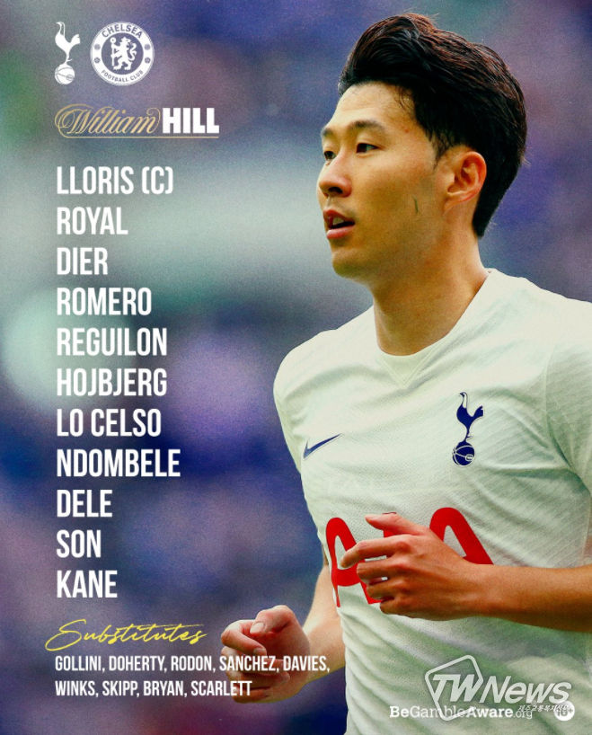 토트넘 라인업은 케인, 손흥민, 델레 알리, 은돔벨레, 로셀소, 호이비에르, 레길론, 로메로, 디에르, 로얄, 골키퍼 요리스