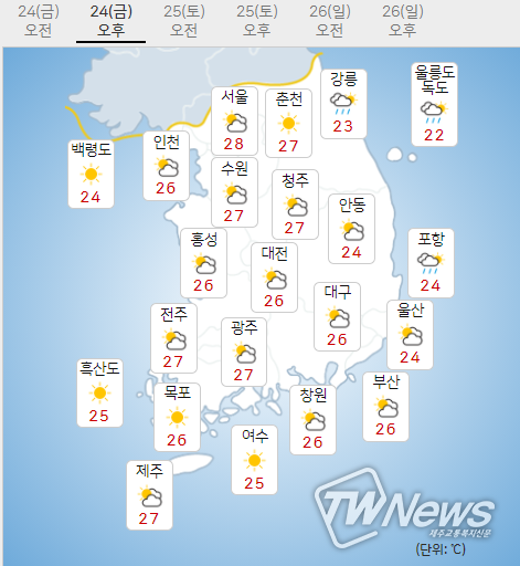 24일 금요일 오늘날씨는 다음과 같다.