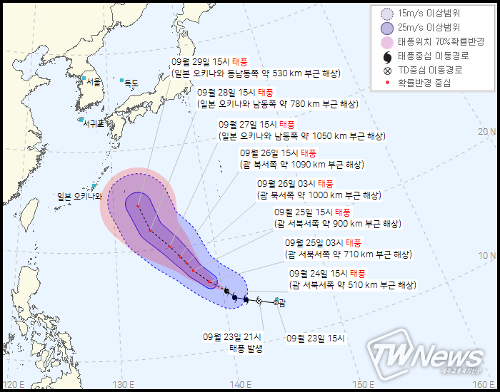 25일 15시 괌 서북서쪽 약 900km부근해상