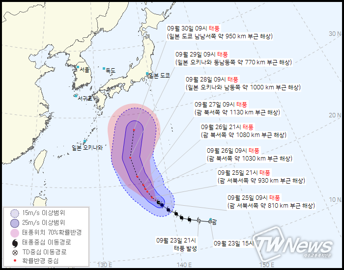 30일 09시 일본 도쿄 남남서쪽 약 950km부근해상