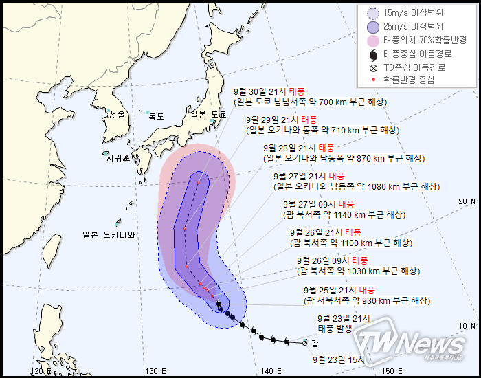 26일 21시 괌 북서쪽 약 1100km부근해상