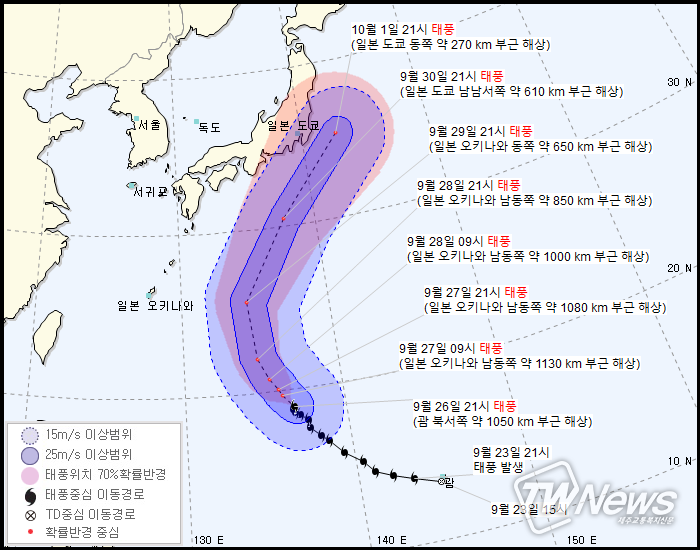27일 월요일부터 초강력 태풍으로 일본 오키나와를 지나 도쿄를 향해 북상하겠다.