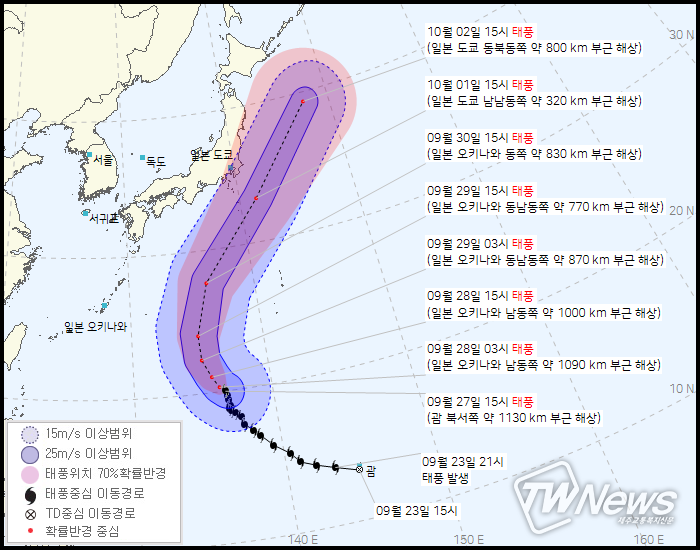 30일 15시 일본 오키나와 동쪽 약 830km부근해상