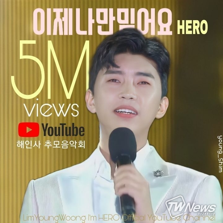 임영웅이 지난해 6월 20일 공식 유튜브 채널에 공개한 '임영웅 [이제나만믿어요] 해인사 추모음악회' 영상은 28일 조회 수 500만 뷰를 넘어섰다. 영상이 공개된지 15개월이 조금 넘은 시점에서 기록을 달성한 것.
