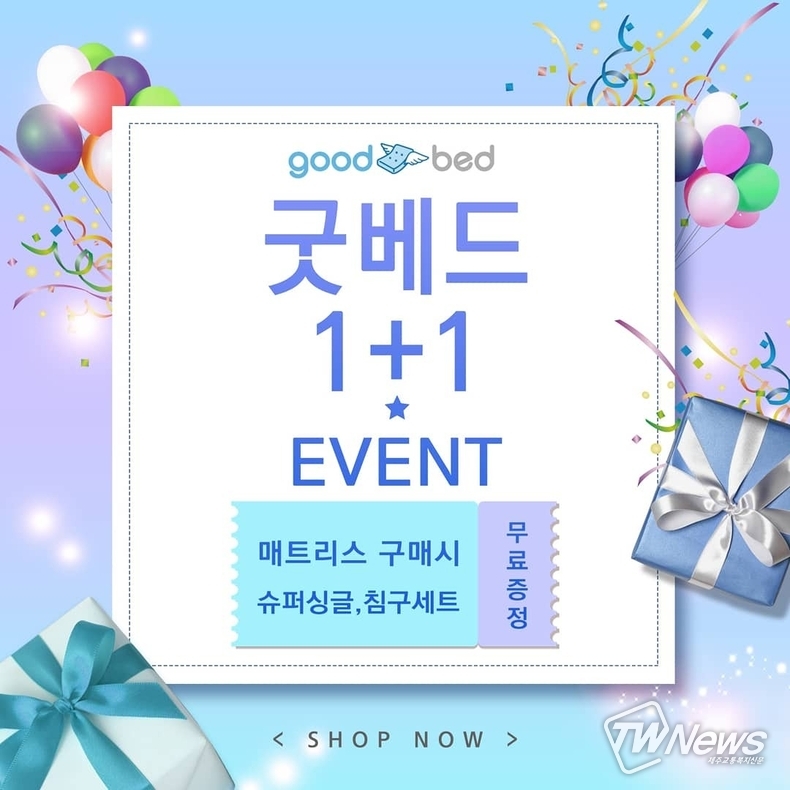 현재 굿베드에서는 고급메모리폼 베게, 방수커버를 포함 구매제품에 따라 퀸사이즈 이상 구매하시는 모든 분에게 수퍼싱글 매트리스를 사은품으로 지급하는 1+1행사를 진행 중이다.