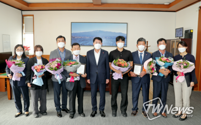 [제주교통복지신문 김현석 기자] 제주시는 10월 1일 시장 집무실에서 2021년 지역 해양쓰레기 관리 역량 평가 우수지자체 및 청정안전 해수욕장 조성 유공자에 대한 표창을 수여했다고 밝혔다.