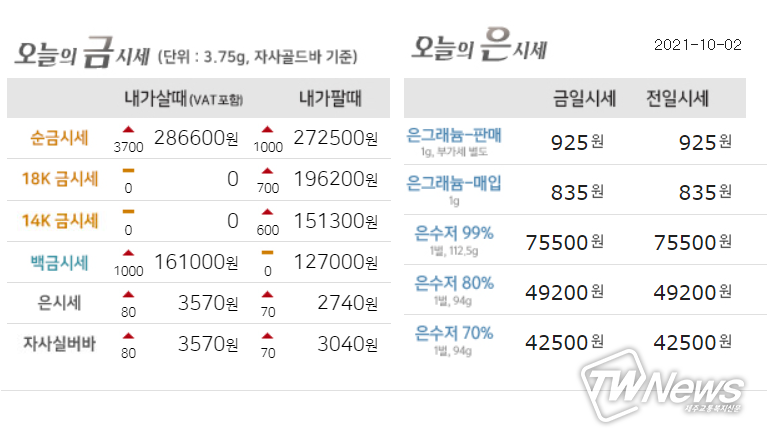 자세한 금값시세는 한국표준금거래소, 한국금거래소 등 다양한 홈페이지에서 조회할 수 있다.